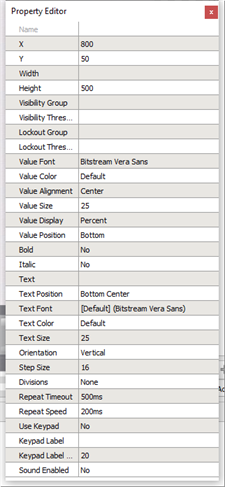 The Property Editor displays all of the properties of the selected object for viewing or modification. Each object has its own set of properties, therefore the properties displayed in the editor are completely dependent on the selection. The object name is the first property displayed in the Property Editor.