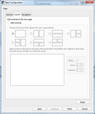 - Click on the "Layout" tab. This display allows you to add controls to the new page you have just created.