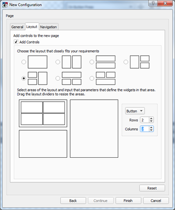 - Specify how many rows and columns of that input control you want displayed in that particular area of the layout. For instance, two rows of buttons, two columns wide (would equal 4 buttons in total for that specific area).