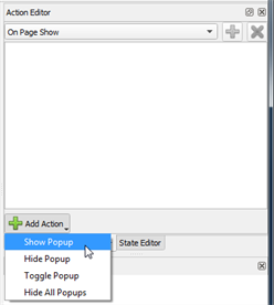 Page actions available for selection include "Show Popup", "Hide Popup", "Toggle Popup", and "Hide All Popups".
