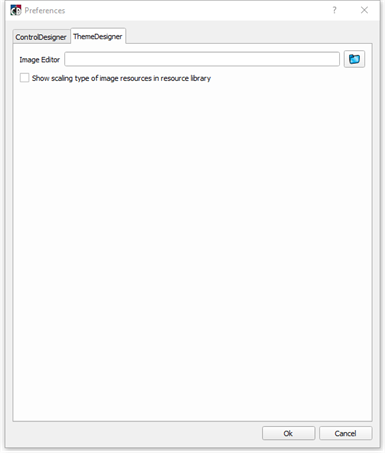 ThemeDesigner preferences are available to select an image editor (external image editing software) that will be used by default when opening an image for edit within the application.