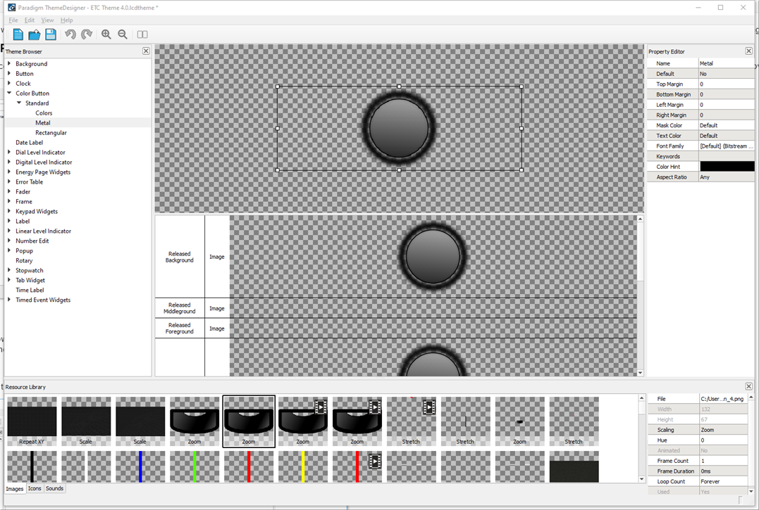 Select the "Show scaling type of image resources in the resource library" check box to display a scaling label for each of the image resources in the ThemeDesigner resource library as it is opened. Scaling types include stretch, zoom, and scale.