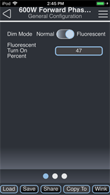- Dim Mode - Tap to set the dimmer mode to either Normal or Fluorescent.