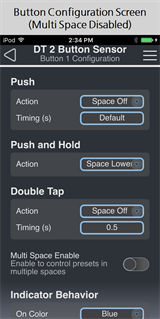Note: If Multi Space is enabled, the Push and Hold Action will be disabled and the Double Tap Action will be automatically configured.