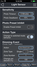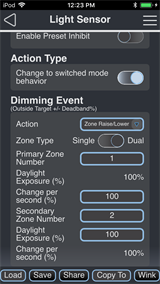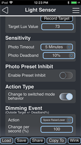 Note: Changes made to the Light Sensor configuration settings using the EchoAccess App impact the behavior of the sensor when Custom Config mode has been enabled (set to On). The Custom Config mode DIP switch is located on the circuit board (rear side) of the sensor. A sensor placed in Basic Config mode (Custom Config DIP switch set to Off) is unaffected by EchoAccess App custom configuration settings.