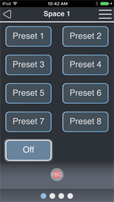 Preset Control provides control of configured presets in each allowed space.
