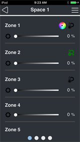 Note: In order to see Color Control icons on the Zone Control page, you must configure the "Demo Mode" Expansion Bridge Space Configuration page with Color, Studio, or Color Temp zone types.