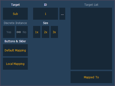 Die Standardbelegung von Tasten und Stellern wird zunächst von den Sequenzlisten- oder Submasterlisten-Eigenschaften für diesen Inhalt abgeleitet. Wird diese Zuordnung in Tab 36 geändert, werden die neuen Belegungen an die entsprechende Sequenzliste oder Submaster übertragen, wodurch sich alle anderen Instanzen ebenfalls ändern. Bei der Einstellung Lokale Zuordnung wirken sich alle Änderungen in Tab 36 nur auf diese Instanz des Inhalts aus. Informationen zur Standardbelegung finden Sie unter Sequenzlisten-Eigenschaften und Submaster-Eigenschaften.