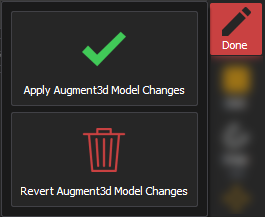 Wählen Sie {Fertig}, um den Editiermodus zu beenden. Wählen Sie aus, ob Sie die am Augment3d-Modell vorgenommenen Änderungen übernehmen möchten oder ob Sie diese rückgängig machen und das Menü verlassen möchten, ohne die Änderungen zu speichern.