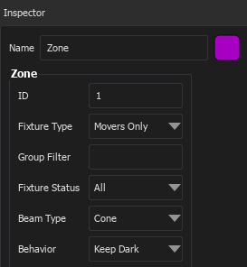 Es sind Felder verfügbar, in denen Sie den Namen, die Farbe und die eindeutige ID-Nummer der Zone zusammen mit den folgenden Optionen festlegen können: