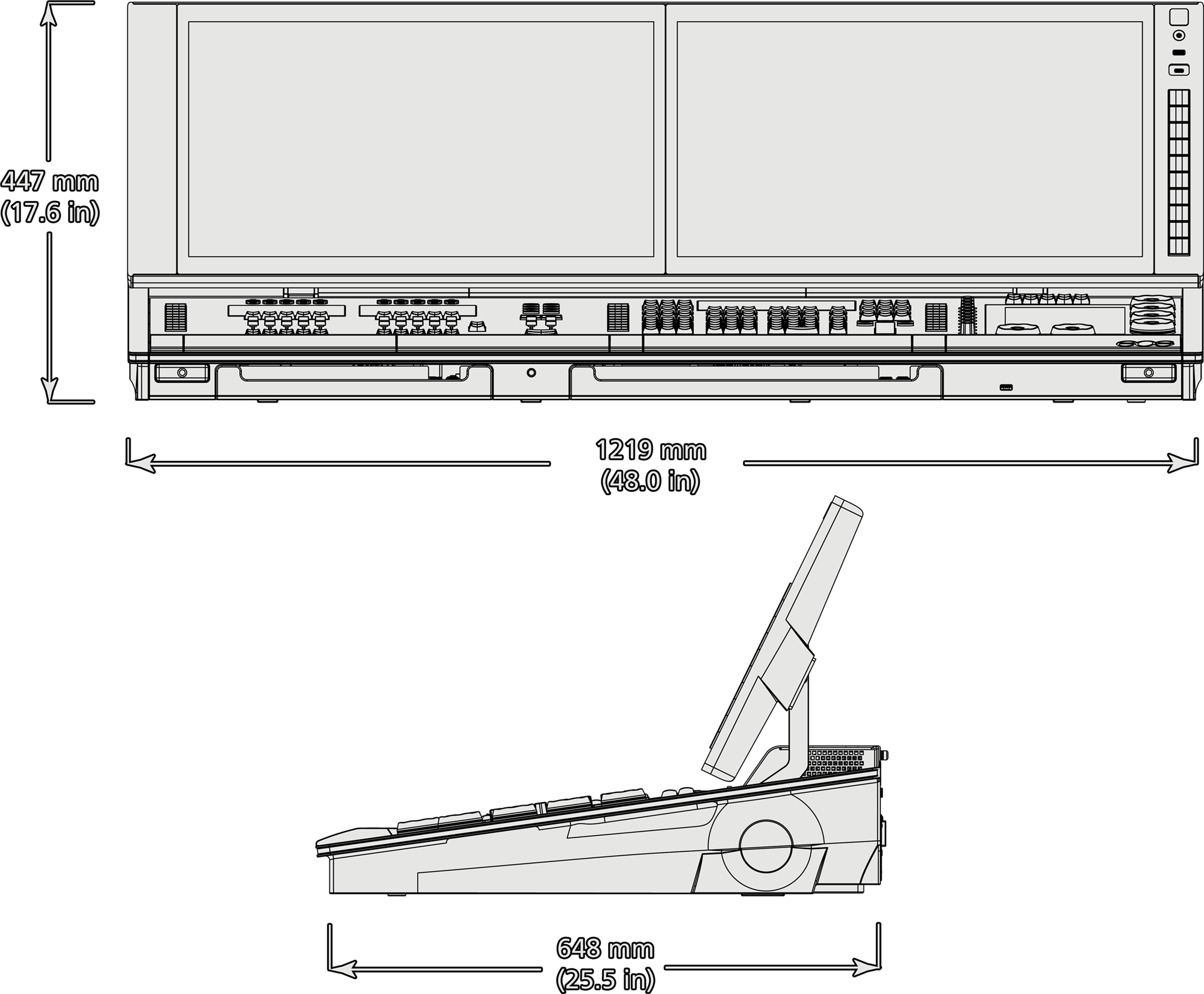 Each bank of five faders has a dedicated multi-touch display for local status of playback content.