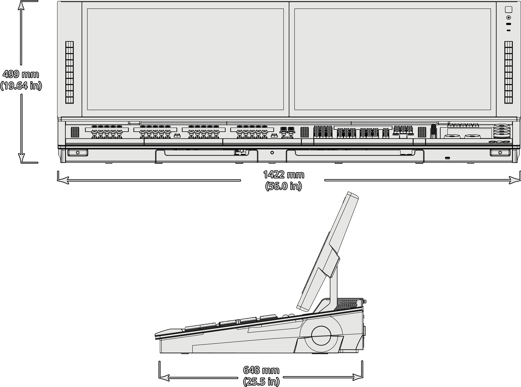 Each bank of five faders has a dedicated multi-touch display for local status of playback content.