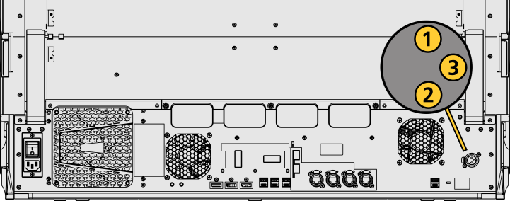 - Insert the included power cord, locking it into the IEC socket under the hard power switch on the back of the Ion Xe. Connect the other end of the cord to wall power.