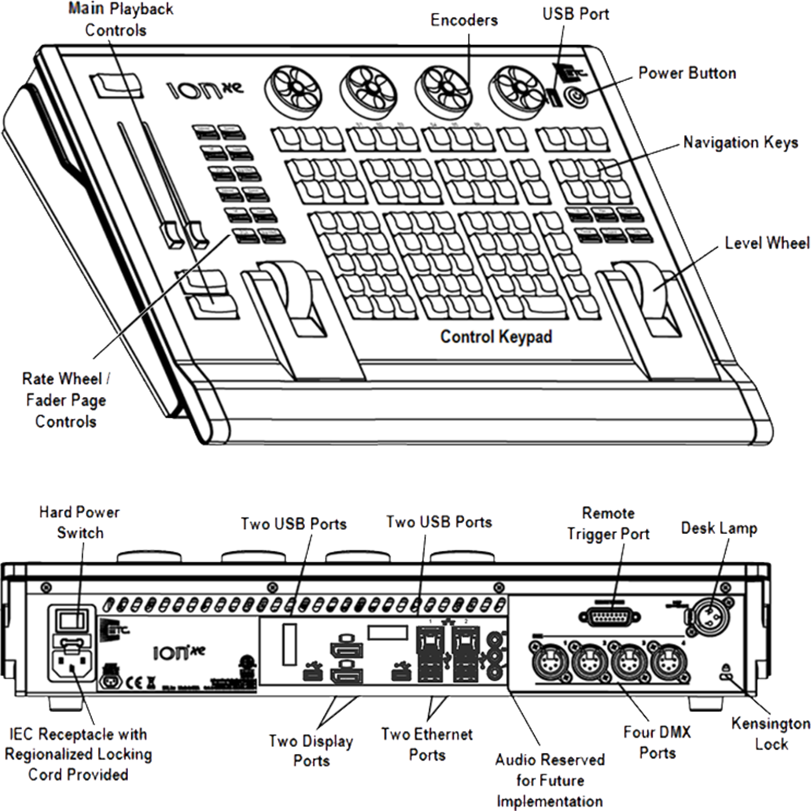 Note: The ports and port layouts pictured in this section are for general identification and orientation. See the Physical Overview below for details specific to your Ion Xe.
