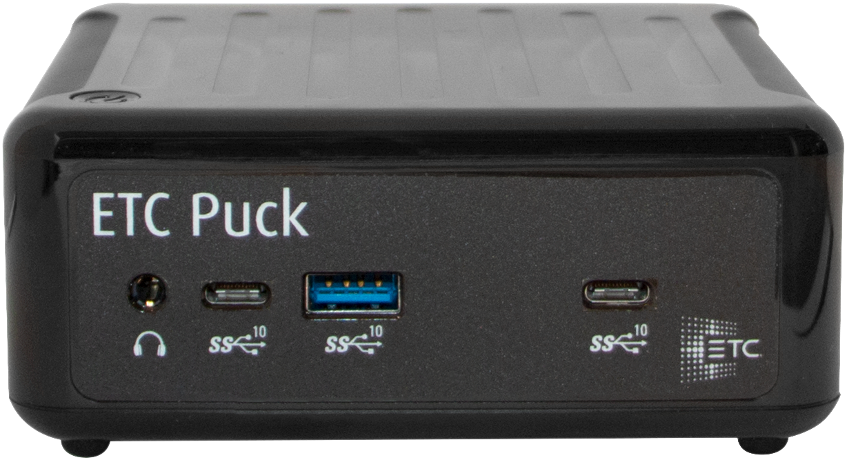 The ETC Puck lighting controller is a full-featured mini-computer with an embedded ETCnomad lighting control USB dongle capable of running Eos and Element applications in Primary, Backup, Client and Offline environments.