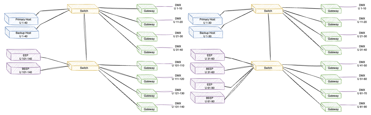 A well-architected network will ensure that all Eos devices in the session stay in sync, and data makes its way to the relevant output devices.