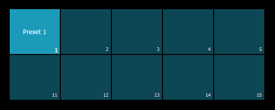 For example, record preset 1, containing channels 1-10. Open a direct select bank displaying presets. Type [1] [Thru] [10] [Enter]. The preset 1 direct select button will be highlighted gray.