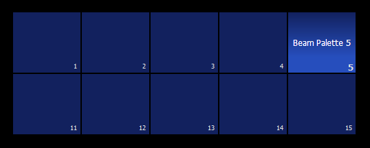 For example, record beam palette 5, containing channels 10-20. Open a direct select bank displaying beam palettes. Type [1] [Thru] [20] [Enter]. The beam palette 5 direct select button will be highlighted with a gradient.