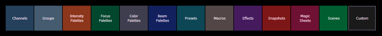 Targets are specific elements of your show file that can be assigned to direct select buttons. With the exception of custom direct selects, only one target type can open in a direct select bank.