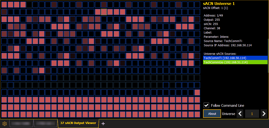 The sACN Output Viewer is a place to check the current live outputs on a universe by universe basis.