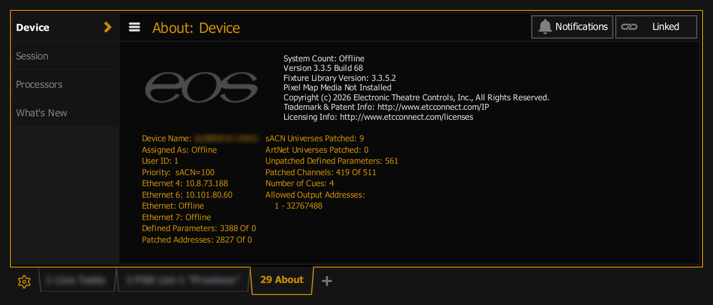- Patched Addresses - the number of addresses that have been used in Patch, which counts toward the available outputs.