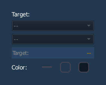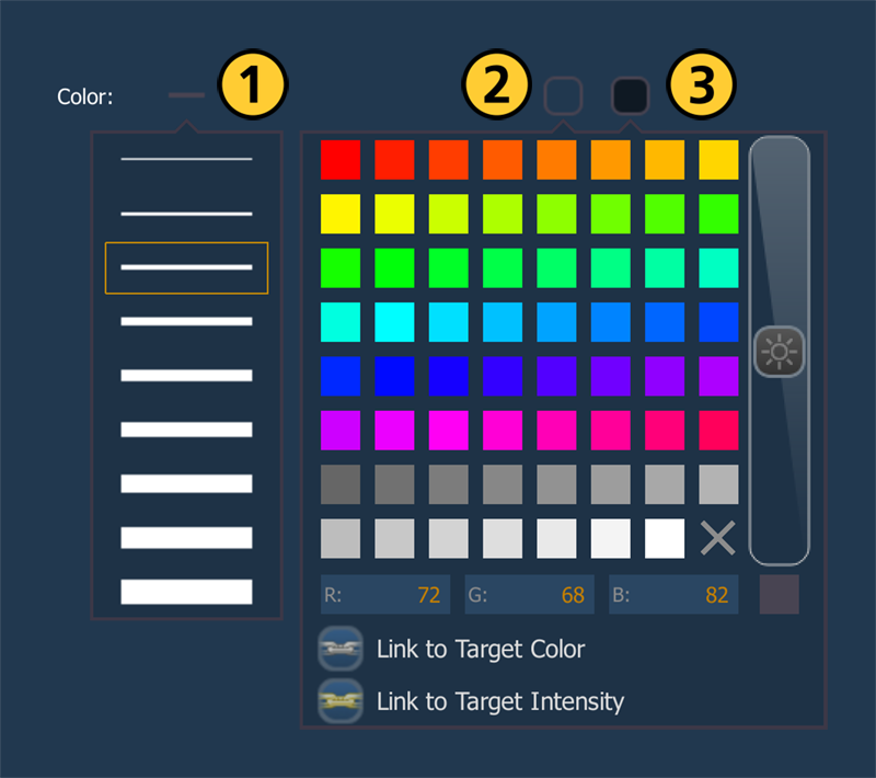 If the target has no color or intensity parameters, the object color will appear as selected.