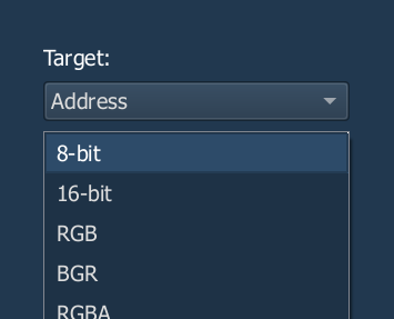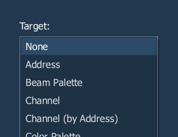 - Address - any Address. When an sACN Input object is assigned an address target, use the second dropdown menu to specify the type of sACN data to monitor. For IRGB-type addresses, assign Color to the first color address, and Intensity to the intensity control address.