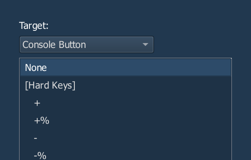 - Console Button - the hardkeys on your console. Use the second dropdown to choose from a list of all hardkeys.