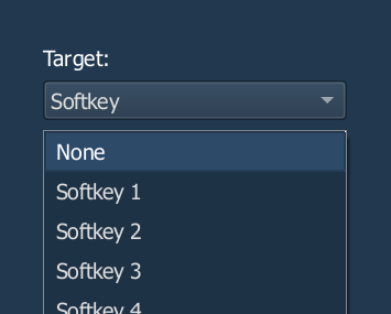 - Softkey - the virtual buttons in the Eos software. Use the second dropdown to choose from a list of all softkeys.