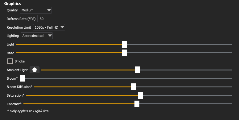 Note: Settings marked with an asterisk (*) are only applied in High and Ultra quality settings.
