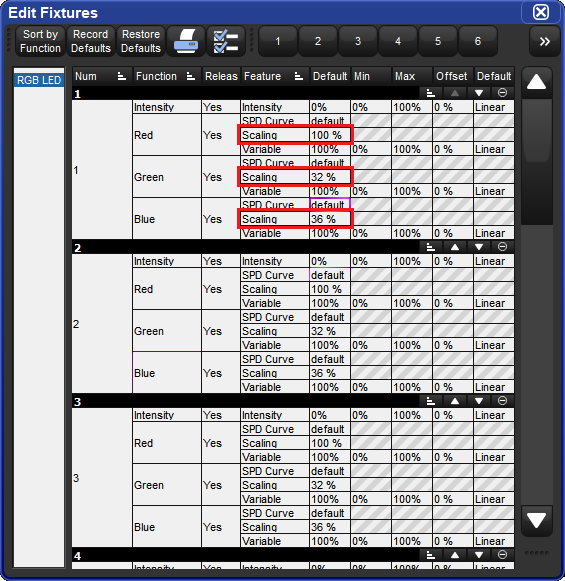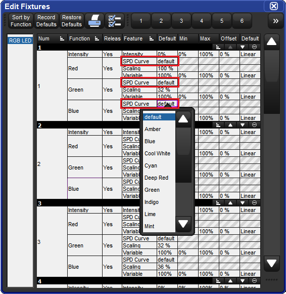 Changes made to SPD Curve and Scaling defaults are applied on a per fixture, per function basis.