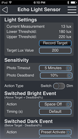 - [Record Target] - tap to use the current lux measurement as the target lux level