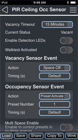 - Vacancy Timeout - use the drop-down menu to set the length of time the sensor waits before triggering the next action. Options include 5 minutes, 15 minutes, 30 minutes, and Automatic.