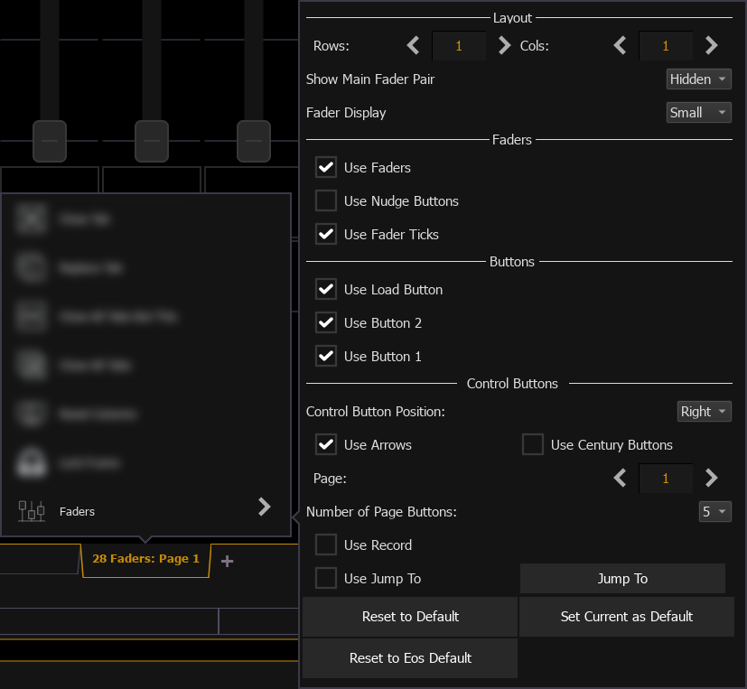 - {Reset to Eos Default} - removes your saved default and returns all settings to the Eos defaults.