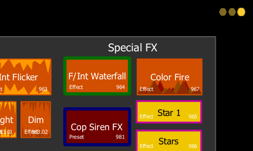 - Show Reference Labels - when enabled, channel objects that reference record targets (such as presets or palettes) with labels will have their labels displayed in the Magic Sheet rather than their target type and number. [About] & [Label] can be used to temporally toggle between views.