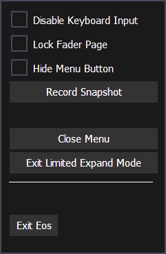 - Exit Limited Expand Mode - exits limited expand mode and returns to the full Eos user interface.