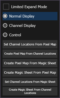 - {Set Channel Locations From Pixel Map} - allows you to pull fixture locations from an existing pixel map in your show file. Specify the pixel map number and any X/Y/Z constraints. Select {Confirm} to place fixtures in your show at the same locations they exist in the pixel map.
