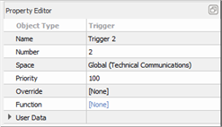 5. Change the Trigger's priority level. The default priority is 100 and the allowable range is 1-200, where 200 is the highest priority. Lower priority control of an object will not operate if a higher priority control for the same object is active. This can be used to designate "more important controls".