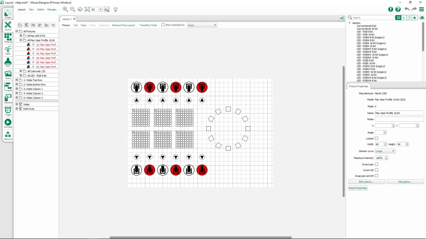 It is desirable to position the fixtures on the layout as accurately as possible to improve both the accuracy of the programming (in particular pixel matrices created automatically from the layout) and the general neatness of the project and simulation.
