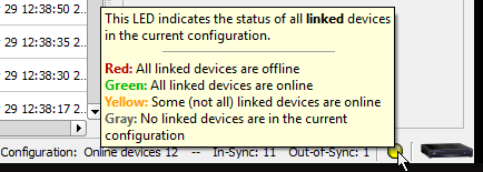 Online Devices Indicator displays a color that indicates the status of all linked devices in the configuration.
