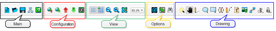 Toolbars are provided for quick access to the many features and functions of ETC Concert. Tools are divided into functional toolbar groups: