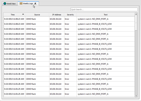 Concert provides the ability to regenerate log reports that have been saved to a configuration. Select Run Existing Log Report from the View menu.